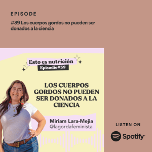 Nuestro podcast se engalana hoy con la visita de Miriam Lara-Mejía, la activista y educadora detrás de @lagordafeminista, una comunidad en Instagram y TikTok que se enfoca en visibilizar la discriminación, violencia e intolerancia de la gordofobia y el estigma de peso, con un acercamiento feminista y anti-patriarcado. Spotify, Apple Podcasts